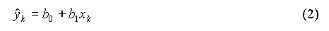 I. ThéorieI.A. Droite des moindres carrésOn cherche à exprimer la relation entre deux variables x et y : On va chercher une relation de la forme : y = b0 + b1x. C'est l'équation d'une droite, d'où le terme de régression linéaire (Figure 1).
