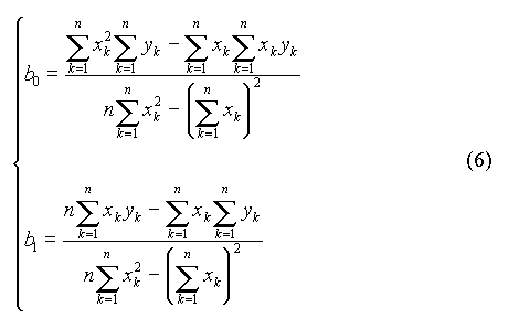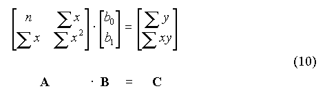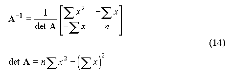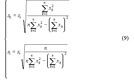On retrouve ainsi les équations (6). La matrice de variance-covariance V est telle que : V = Vr A-1, où Vr est la variance résiduelle. Les termes diagonaux de V donnent les variances des paramètres, c'est-à-dire les carrés des écart-types s0 et s1. Il vient donc :