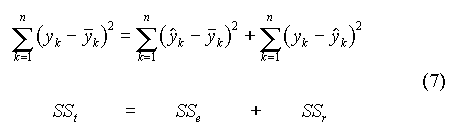 C'est l'équation d'analyse de la variance. Si l'équation de la droite représente correctement les valeurs expérimentales, on a :