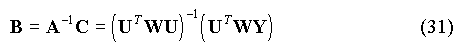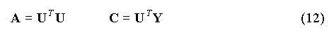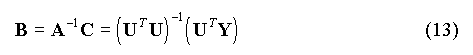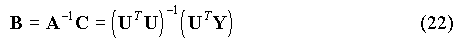 A est la matrice du système, B le vecteur des paramètres et C le vecteur des termes constants (on a omis l'indice k pour alléger l'écriture). Introduisons la matrice U et le vecteur Y tels que :