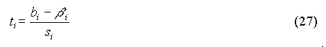 (où ßi désigne la vraie valeur du paramètre) est distribué selon une loi de Student à (n - p) degrés de liberté. On peut alors, pour chaque paramètre, tester l'hypothèse nulle :