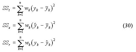 Les valeurs de r2, sr et F, ainsi que la matrice de variance-covariance, se calculent comme précédemment. Le résidu normalisé pour l'observation k est égal à (ek / sr) · wk½. Ces résidus normalisés doivent suivre la loi normale réduite.